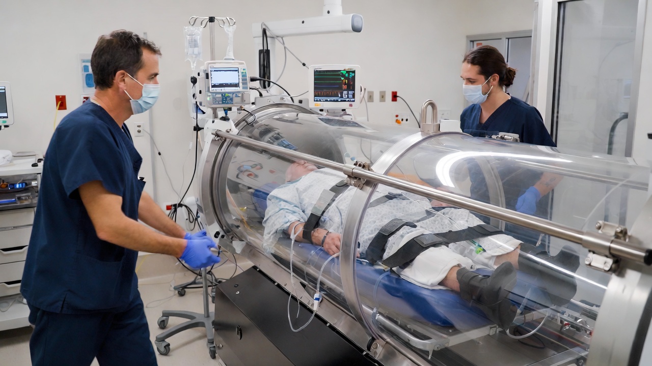 HBOT: A pressure tank procedure — prescription required.